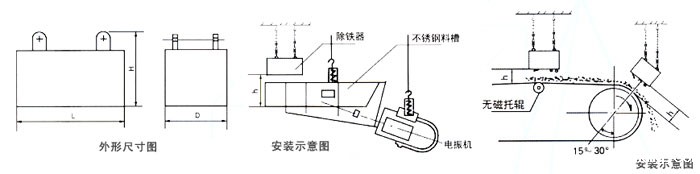 本机与皮带输送机、振动输送机、星空app官方版pc版、下料溜槽等输送设备配套使用,清除夹杂在散状物料中0.1-25公斤的铁磁性物质。