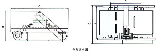 型号 | 适应带宽mm | 额定吊高mm | 磁场强度≥mT | 物料厚度≤mm | 驱动功率≤kw | 适应带速≤m/s | 重量kg | 外形尺寸 mm | ||||
